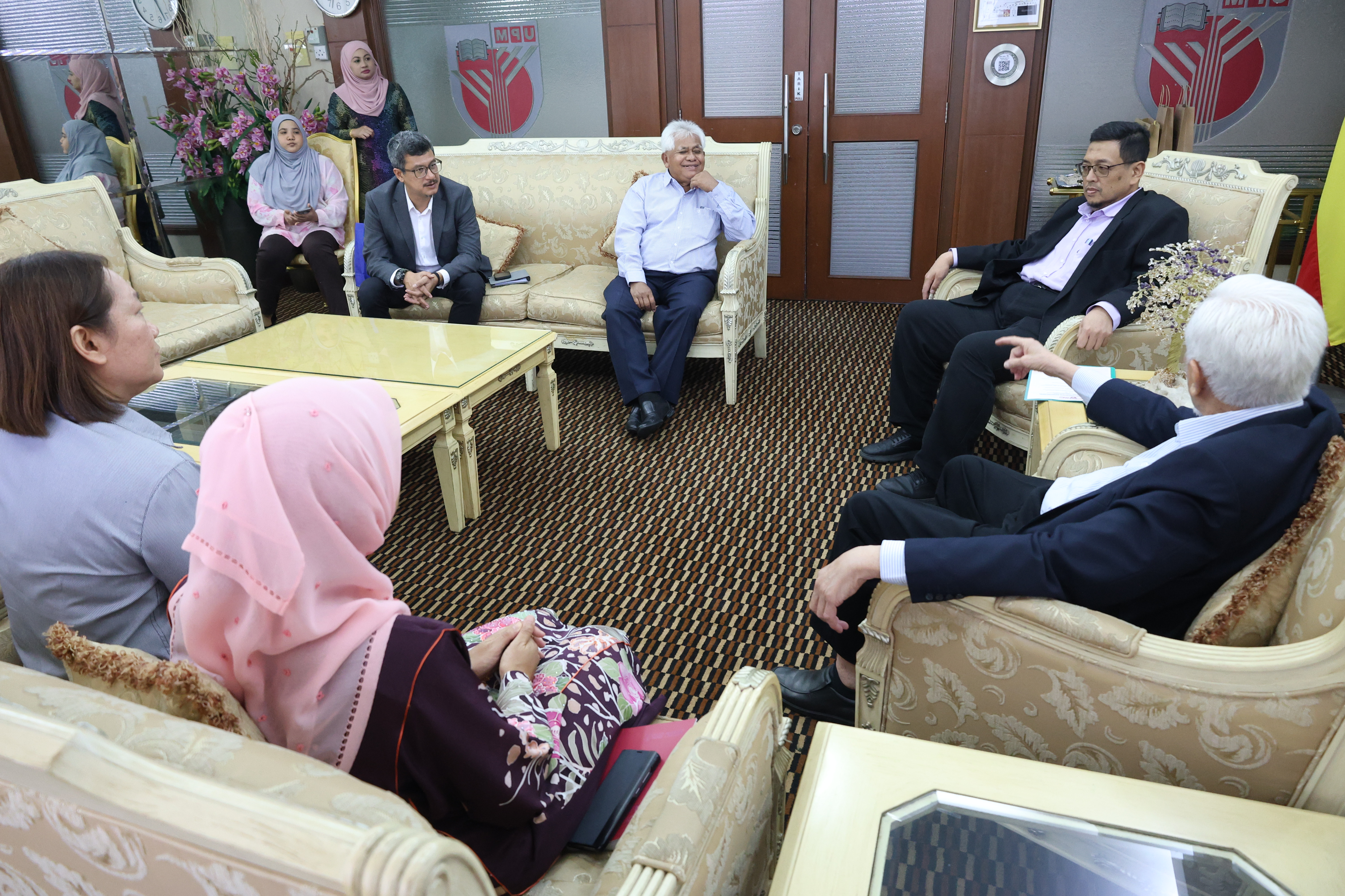 SERDANG, 14 April – Naib Canselor Universiti Putra Malaysia (UPM), YBhg. Dato' Prof. Dr. Ahmad Farhan Mohd Sadullah telah menerima kunjungan hormat daripada Setiausaha Agong Lembaga Penyelidikan dan Pembangunan Getah Antarabangsa (IRRDB), Datuk Dr. Abdul Aziz S.A. Kadir di Bangunan Canselori Putra, UPM. Delegasi IRRDB turut disertai oleh En. Tajuddin Ismail (Felo IRRDB) dan En. Irwan Hakim Dzulkifli (Pegawai Pentadbiran IRRDB) yang telah turut disambut oleh wakil Institut Kajian Perladangan (IKP) UPM, Prof. Ts. Dr. Siti Khairunniza Bejo (Pengarah IKP) dan Prof. Dr. Wong Mui Yun (Timbalan Pengarah IKP). |