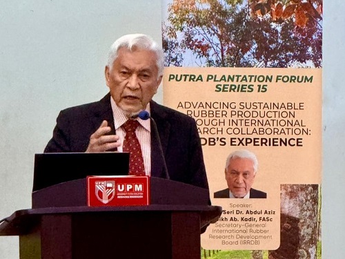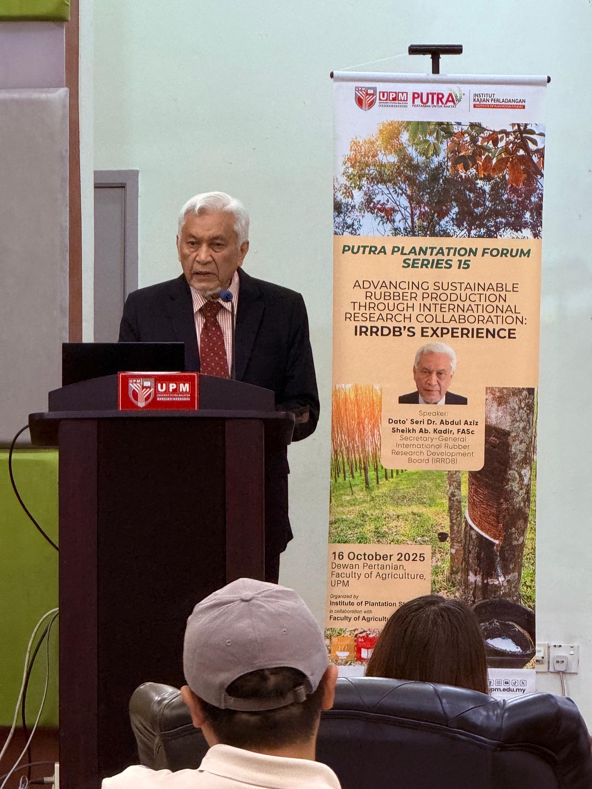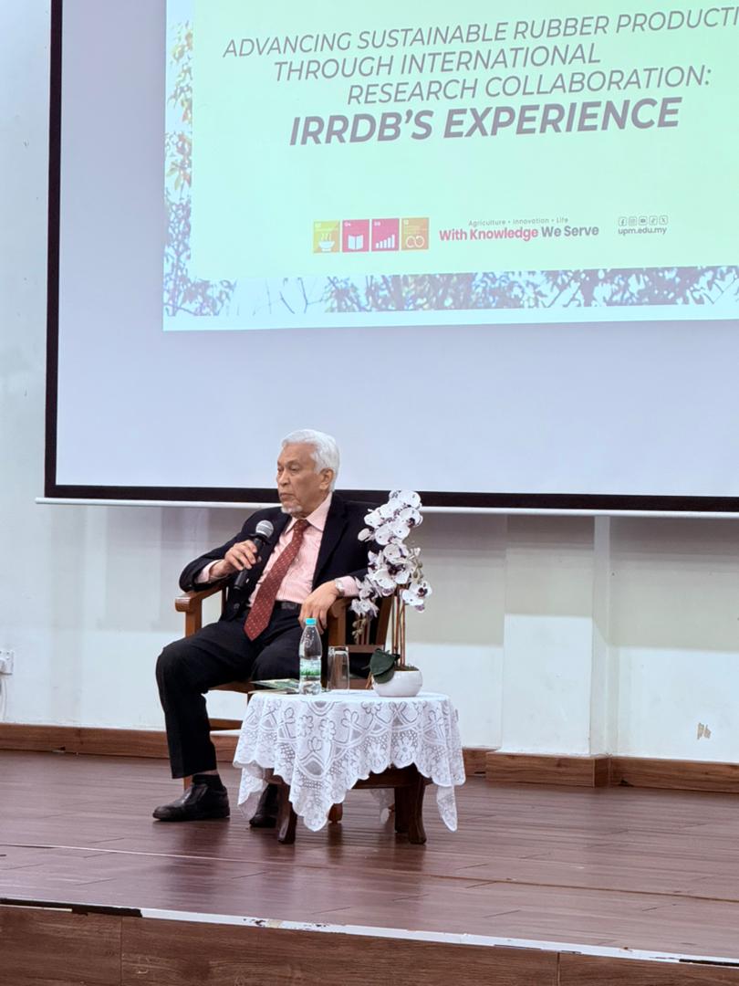 Forum bertemakan “Advancing Sustainable Rubber Production Through International Research Collaboration” ini menampilkan tokoh utama Dato’ Seri Dr. Abdul Aziz S.A. Kadir, Setiausaha Agung International Rubber Research and Development Board (IRRDB), yang berkongsi pengalaman lebih lima dekad dalam industri getah asli. Beliau menekankan kepentingan kerjasama rentas negara dalam penyelidikan dan pembangunan (R&D), serta memperkenalkan inovasi produk baharu berasaskan getah seperti ENR (Ekoprena) dan DPNR (Pureprena) yang memperluas aplikasi industri getah. 📌 Antara sorotan forum: